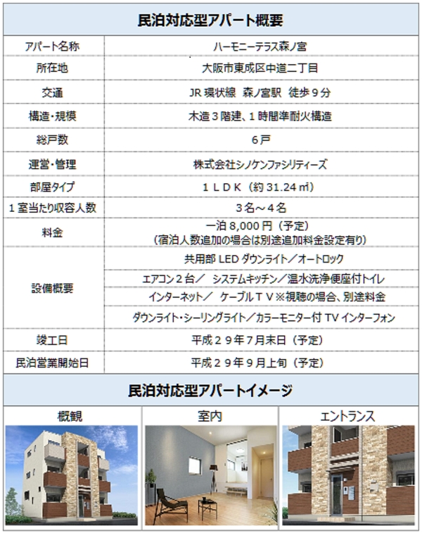 株式会社シノケングループ(東京オフィス:東京都港区,代表取締役社長:篠原英明、 東証ジャスダック市場 証券コード8909,以下グループを総称しシノケンG)は、 民泊対応型、 投資用アパートおよび投資用マンションの分譲を2017年4月4日より開始いたしますので、 お知らせいたします。