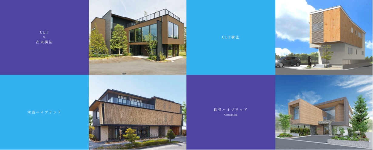 ライフデザイン・カバヤは、 ヨーロッパで既に30年以上の歴史があるCLT建築の日本普及を目指している。 これまでの取り組みとして、 CLT×在来構法(自社住宅展示場:倉敷市西中新田)、 CLT×木造ハイブリッド(自社事務所ビル:倉敷市西中新田)、 オリジナルCLT構法(戸建分譲:倉敷市平田)を建築。 こうした取り組みにより施工性の良さ、 快適性といった実証データの収集、 記録を蓄積している。