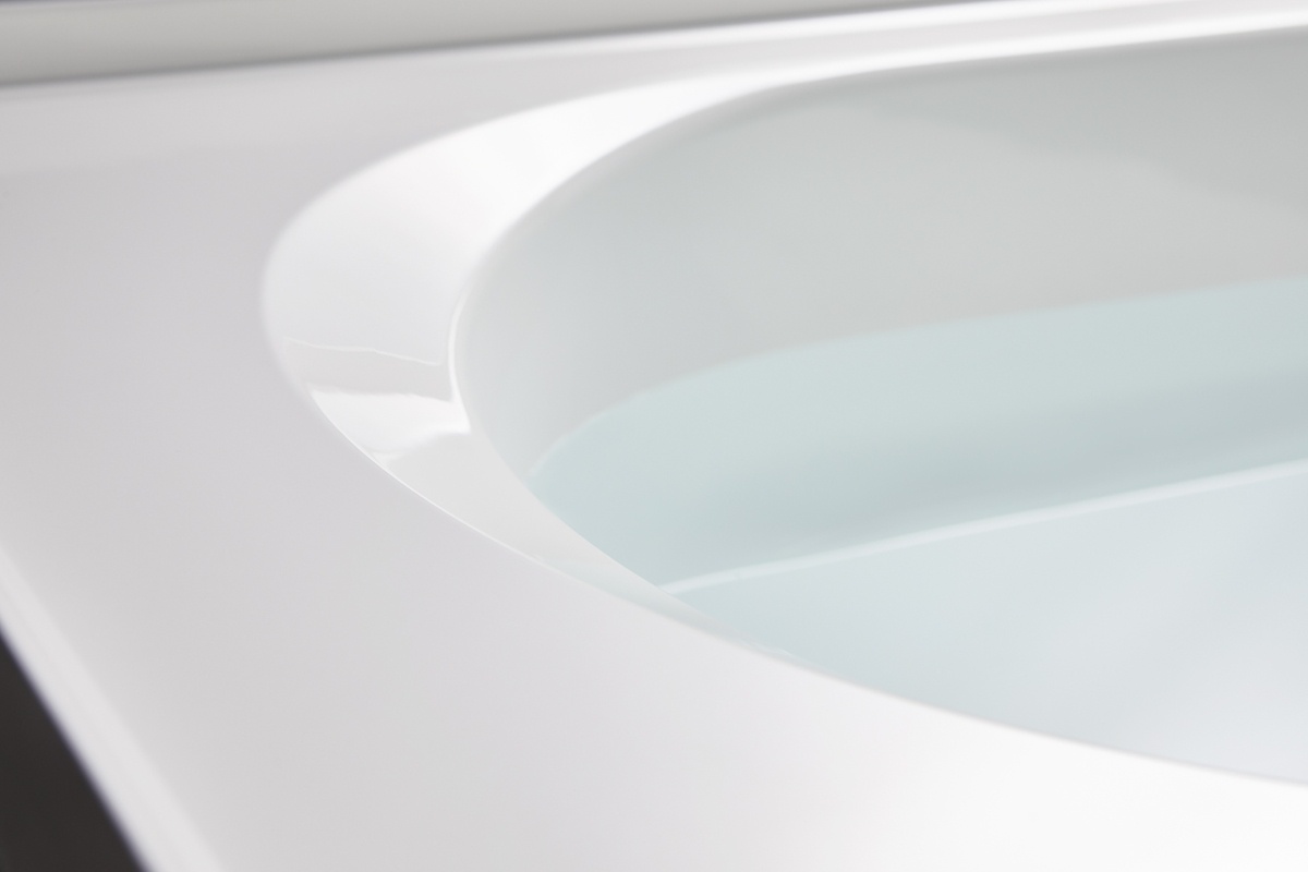 ハウステックが長年重ねてきた独自の樹脂技術で開発した「フェイスクリン浴槽」は、 FRP浴槽の素材から見直しました。 従来のFRP浴槽と比べて汚れがつきにくく、 汚れ落ちのよさが長く続く新素材の浴槽です(フェリテシリーズのみ)。