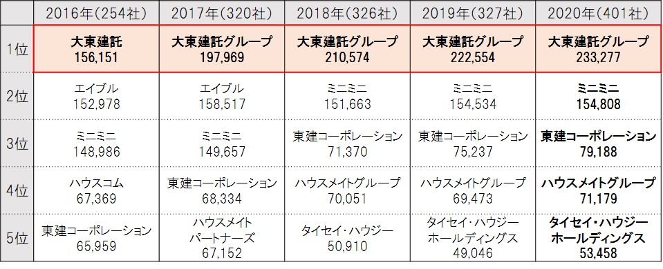 見出 し :2020 賃貸仲介件数ランキング 401社