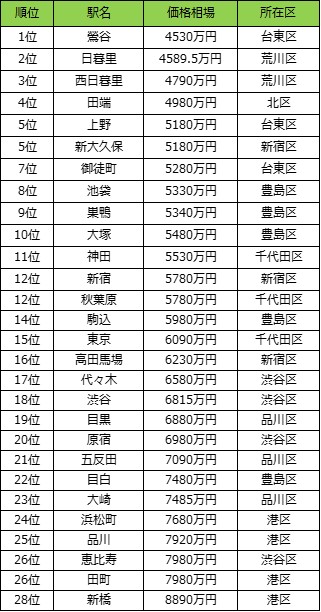 - 【山手線で中古マンション価格相場が安い駅ランキング】※専有面積50平米以上80平米未満