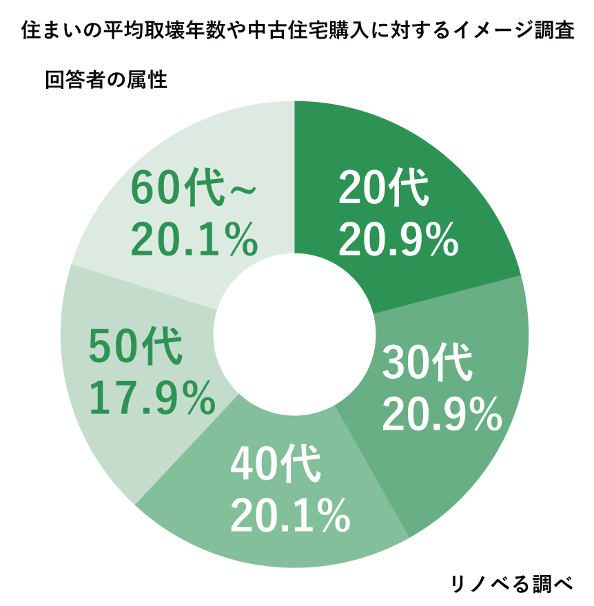 テクノロジーを活用したリノベーション・プラットフォーム事業を全国で展開し、 国内No.1(※3)のワンストップ・リノベーション事業者であるリノべる株式会社(本社:東京都渋谷区渋谷、 代表取締役:山下 智弘、 以下 リノべる)は、 20歳~60歳以上の方536名に対して、 住まいの平均取壊年数や中古住宅購入に対するイメージ調査を実施いたしました。