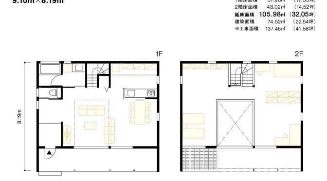 (※1) 木の家 間口5間✕4間半(延床面積:105.98 平方メートル)の場合