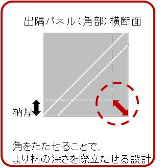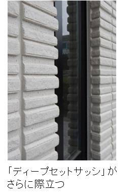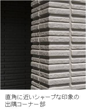 外壁柄の工夫と生産技術の向上により、 今までにない鋭角でシャープな出隅コーナー部のデザインが可能になりました。 これにより「ダインコンクリート」外壁の重厚さを強調する「ディープセットサッシ」も際立ちます。