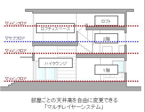 部屋ごとの天井高を自由に変更できる新技術「マルチレイヤーシステム」