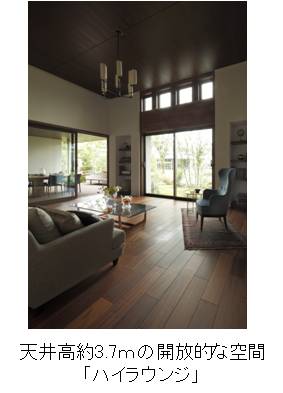 都市近郊など限られた敷地において、 邸宅にふさわしい魅力的な空間の一つとして、 2階床を約1.2m上げることにより天井高約3.7mを確保した豪華でかつ通風、 採光に優れたリビング「ハイラウンジ」を開発しました。 開放的で快適な新しい「スローリビング」のスタイルとして提案してまいります。