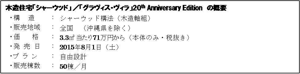 積水ハウス株式会社は、 8月1日(土)より、 木造住宅シャーウッドの誕生20周年を記念したモデル「グラヴィス・ヴィラ」20th Anniversary Editionの販売を開始します。