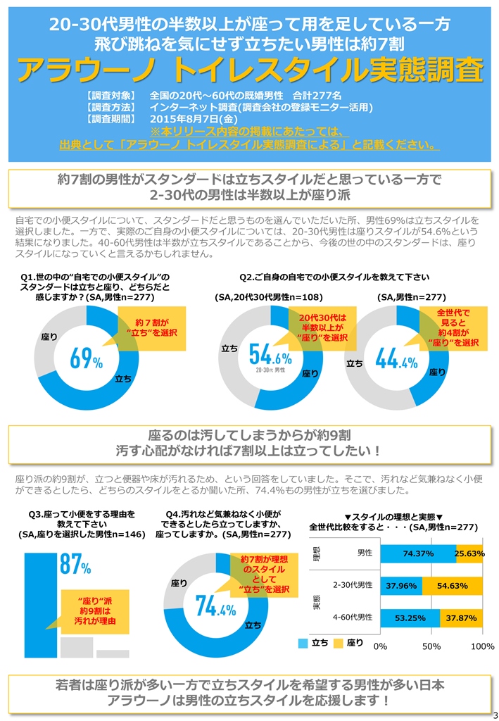 特設サイト「立上がれ!日本の男たち」を公開~飛び跳ねを気にせず立ってしたい男性は約7割に~パナソニック 全自動お掃除トイレ「アラウーノ」