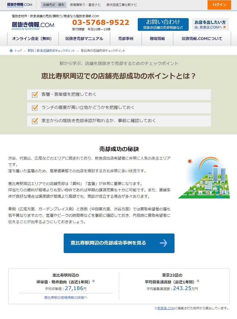 飲食店の閉店支援サービスを提供する、 「居抜き情報.COM」【 http://www.inuki-info.com/ 】(運営:株式会社シンクロ・フード)では、 店舗の売却時に知っておきたいポイントをまとめた「駅別 店舗売却チェックポイント」コンテンツをリリースいたしました。