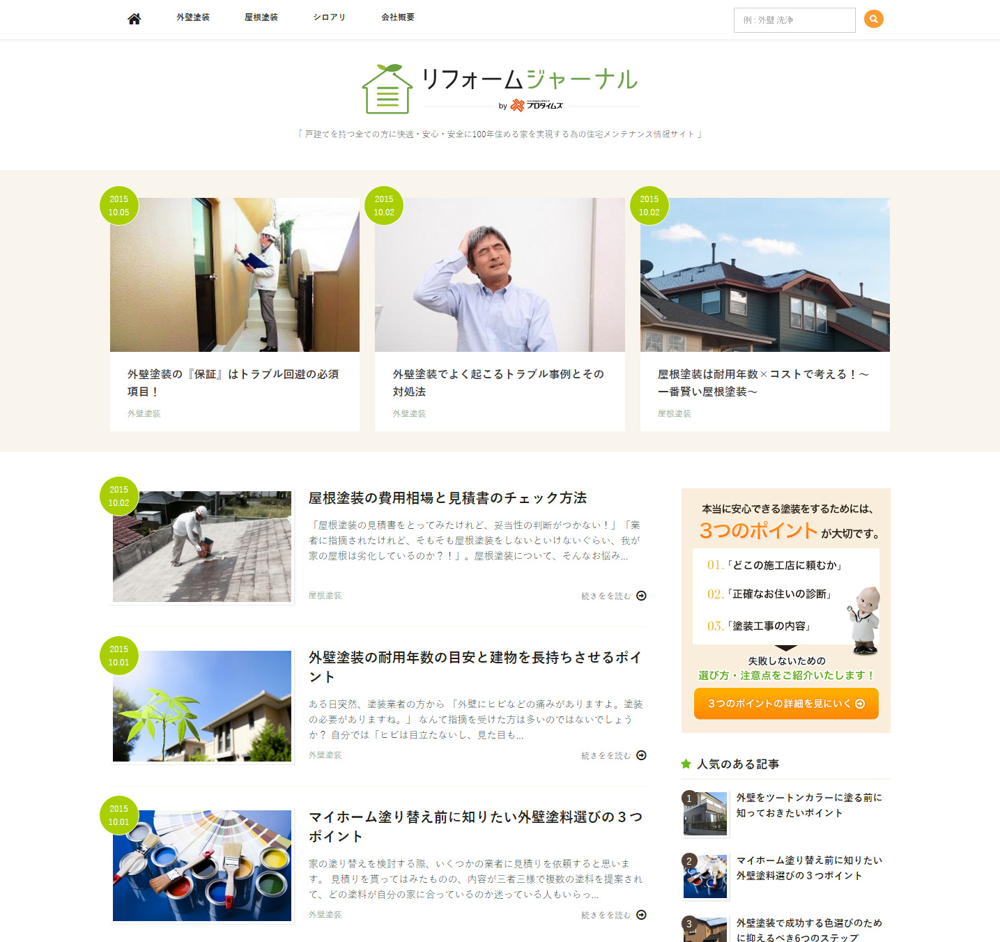 「リフォームジャーナル」( http://reform-journal.jp ) は、 住宅塗装を中心に、 住まいのメンテナンス・リフォームに関する情報を発信するオウンドメディアサイトです。