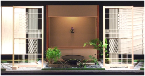 (左から)5人の匠による和紙、 建具、 庭、 床の間、 左官