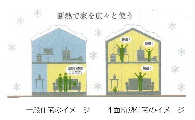 住まい全体4周囲をぐるっと断熱材で包み込むことで魔法瓶と同じように外気の影響を受けにくい優れた断熱効果を発揮し、 日本で最も厳しい北海道地区の次世代省エネルギー基準値「Q値1.6」の実現しました*。 *Q値=熱損失係数:少ないほど断熱性能が高い※詳細は後記のウェブサイトからご参照をお願い致します。