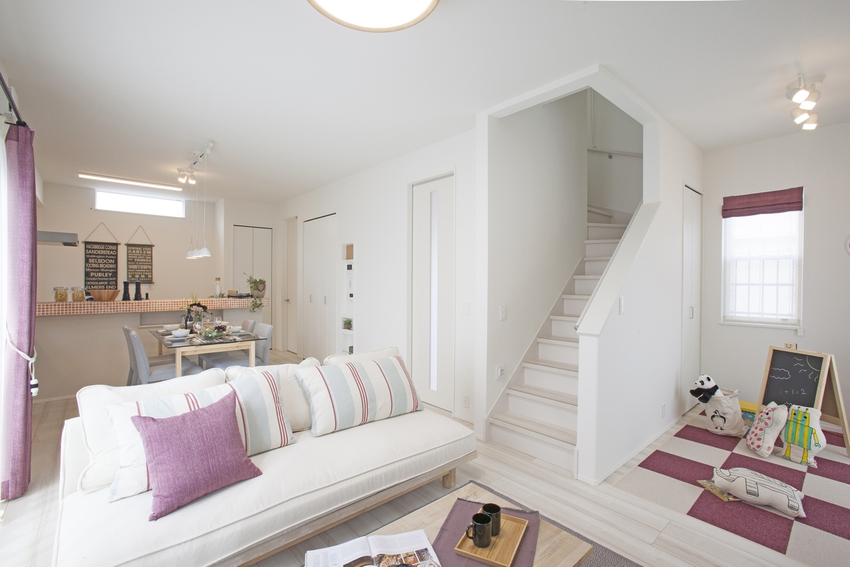 リビングが一望できるフルオープンキッチンや、 クッション性の高いファブリックフロアを使用したキッズコーナーなど、 ファミリーにうれしいプランを随所に設置しました。