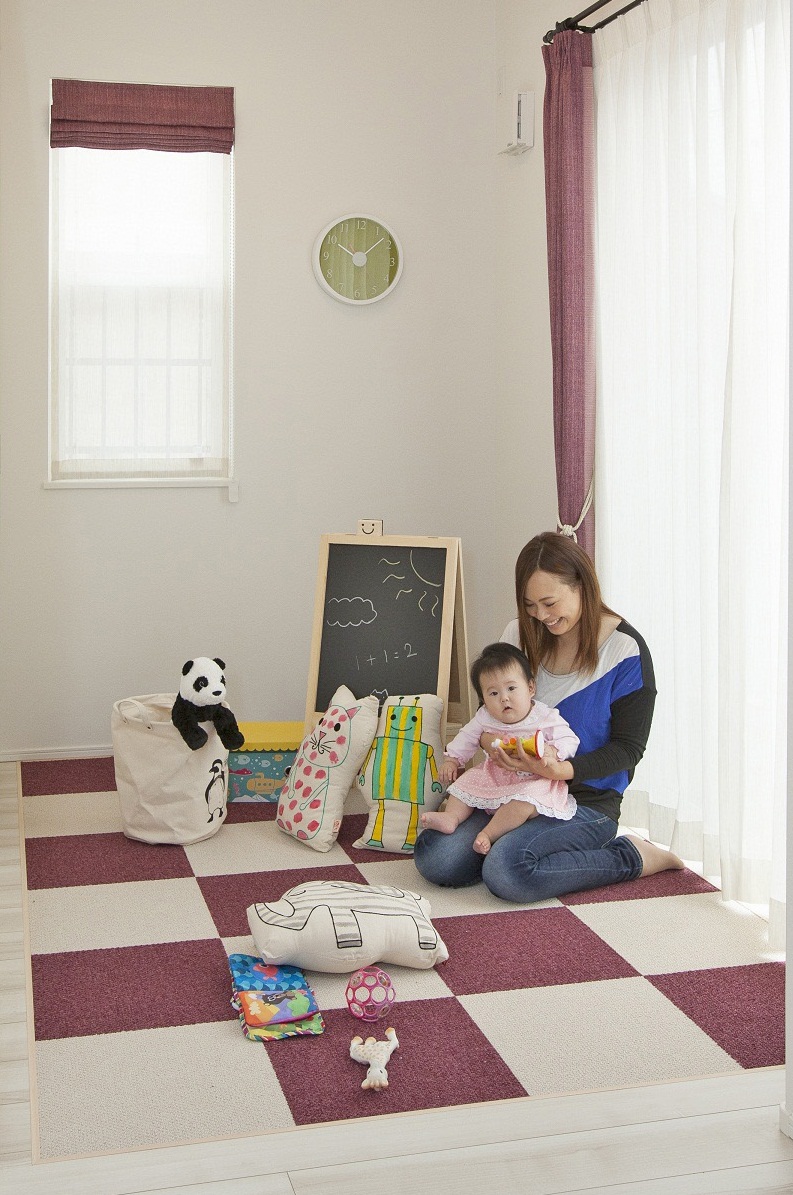 リビングの一角にタイルカーペットを設け、 お子様の遊び場やお昼寝スペースに。