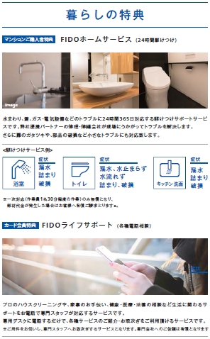 不動産業界初となる「Tカード プラス FIDO MEMBERS CLUB」をはじめとし、 あわせてTポイントプログラムも導入。 マンションご購入者を対象として、 マンション購入時にTポイントが付与されます。 また24時間365日対応する駆けつけサービス「FIDOホームサービス」もRENATUSオーナーにとっては安心のサービスです。