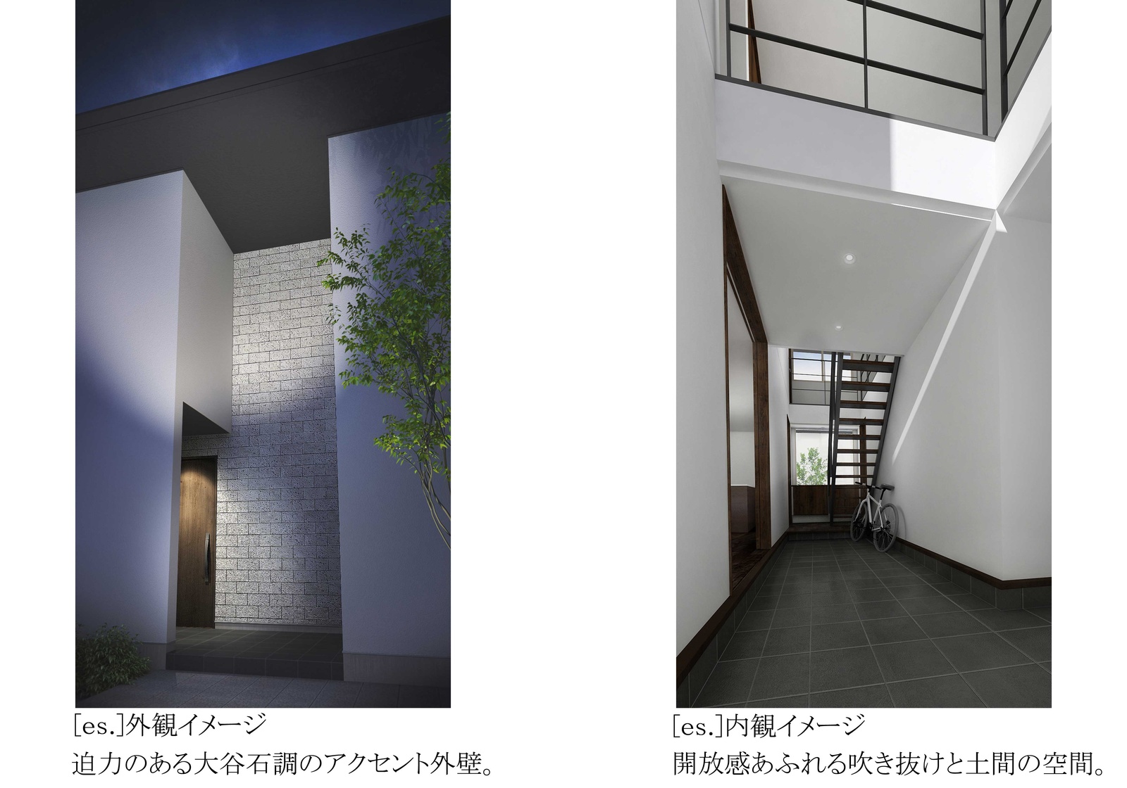 本商品は、 日本人の感性に共鳴する“かたちの本質”(essence of shape)を追求した住まいです。 開発には、 数々のオンリーワンの住まいを手がけてきた「小堀の住まい設計工房」の企業建築家を中心に、 商品開発プロジェクトチームを特別編成しました。 機能性と意匠性はもちろん、 色や素材、 軒先の納まりなど、 徹底してディテールにこだわることで、 シンプルで洗練された外観、 想像を超える奥行のある空間を創り出しました。 当社は、 [es.]の発売により、 65年に亘る住まいづくりの歴史と研築の精神に基づく、 洗練された美しさをご提案してまいります。