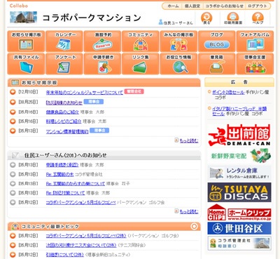 昨今の大型マンションでは新築分譲時より、 マンション居住者間の情報共有や交流を促す専用サイトやアプリの利用事例が増えており、 ディグアウトが提供する マンション居住者専用コミュニティサイト「コラボ」は首都圏の大規模マンションを中心に約5万戸の導入実績 があります。 (2016年2月現在)