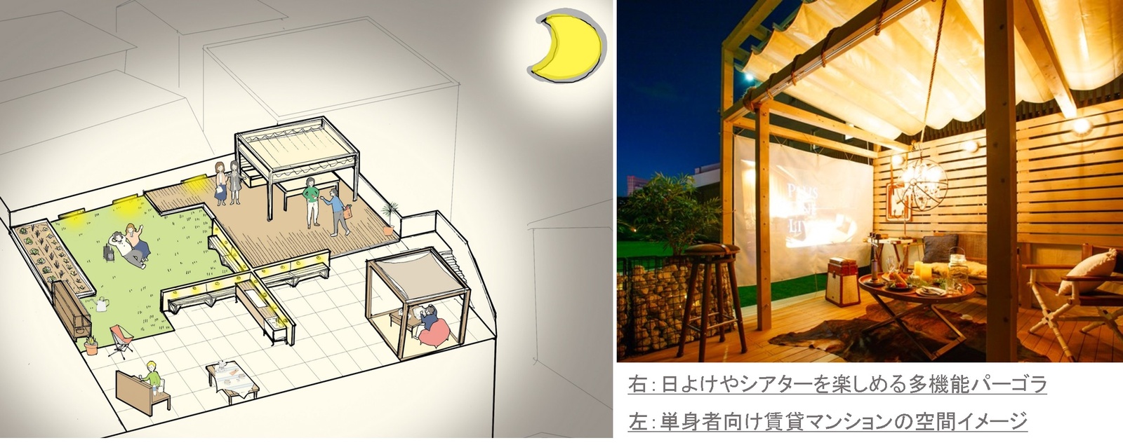 第一弾として、 若年単身者層をターゲットとしたシェアハウスや賃貸マンションにおいて、 『空間・ 時間・道具・情報の4つの要素をシェアする暮らし』をコンセプトに、 屋上やエントランスなど共用部の空間づくりと各要素のシェアを実践するための仕組みを運用します。