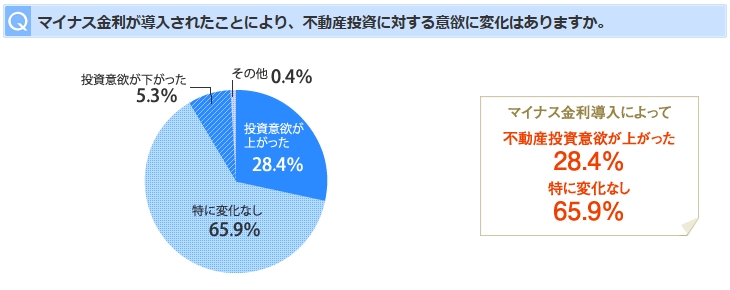 ~マイナス金利導入で「不動産投資に対する意欲が上がった」28.4%~
