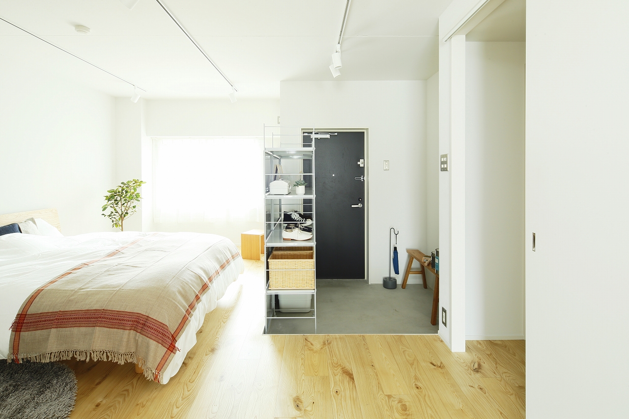 「MUJI INFILL 0」とは、 無印良品が提案するリノベーションの原点、 自分らしく暮らすためのすっぴんの住空間です。 中古マンションそのまま、 というわけでもなく、 リノベーションを完成させるのでもなく、 一度インフィル(内装・設備)を全て取り払い本当に必要なものだけを残して、 暮らしの「0(原点)」をつくり、 自由にパーツやアイテム、 素材を「+(プラス)」していくという住まいの発想です。 一般的なお仕着せの間取りや固定された暮らしではなく、 ライフスタイルの変化や家族の成長に応じて家具や建具などで自由に仕切り、 簡単に安全に変化させていくことができる一室空間としました。 今も、 10年後も、 30年後も、 さまざまな可能性に柔軟に対応できます。