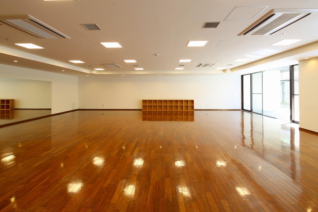 鏡張りの壁があり、 雨の日の子供たちの遊び場やヨガなどのサークル活動に利用することができます。