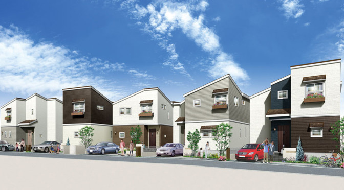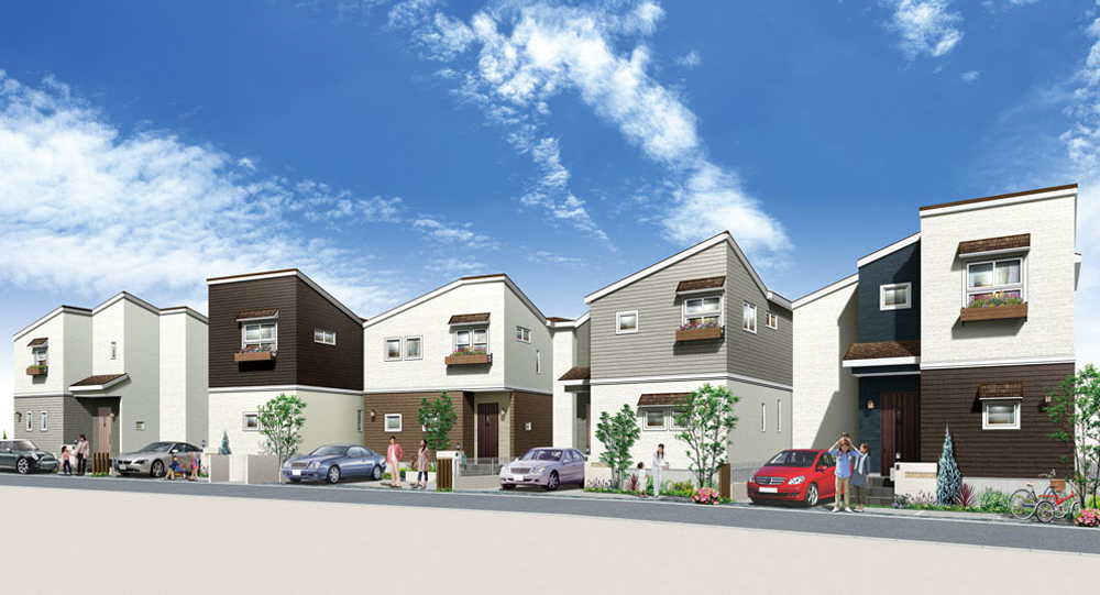 敷地130m2 以上・白いレンガ調&木目調の外壁でつくり出す北欧ナチュラルな街並み。