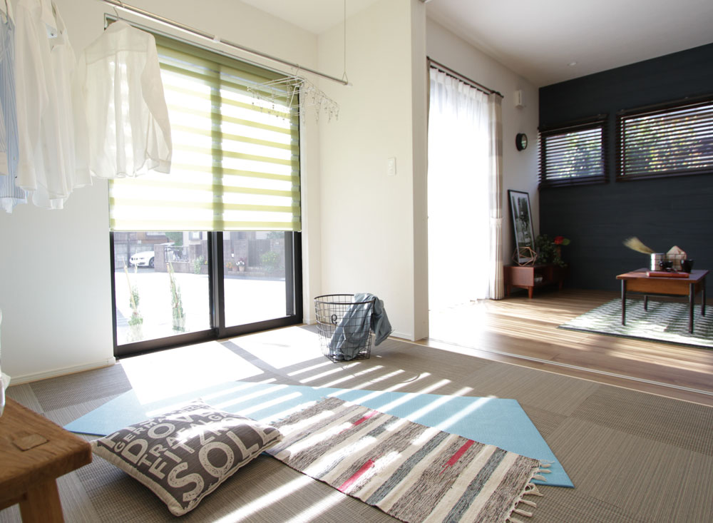 通常和室として設定されることの多いリビングと隣接した空間を“ユーティリティルーム”としました。 趣味や子育てなど普段使いの空間から、 部屋干しなどのランドリー空間まで毎日幅広く活躍します。