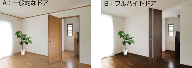 2.同じ間取りでも格段に部屋を広く明るく感じさせるフルハイトドアを使えば解決できます。
