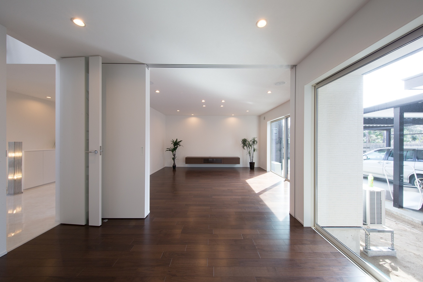 そしてハイドアの中でも枠がない『フルハイトドア』なら、 開口部が色付きの枠で囲まれることもないのでまるで壁がそのまま開いたかのような驚くほどの開放感があります。