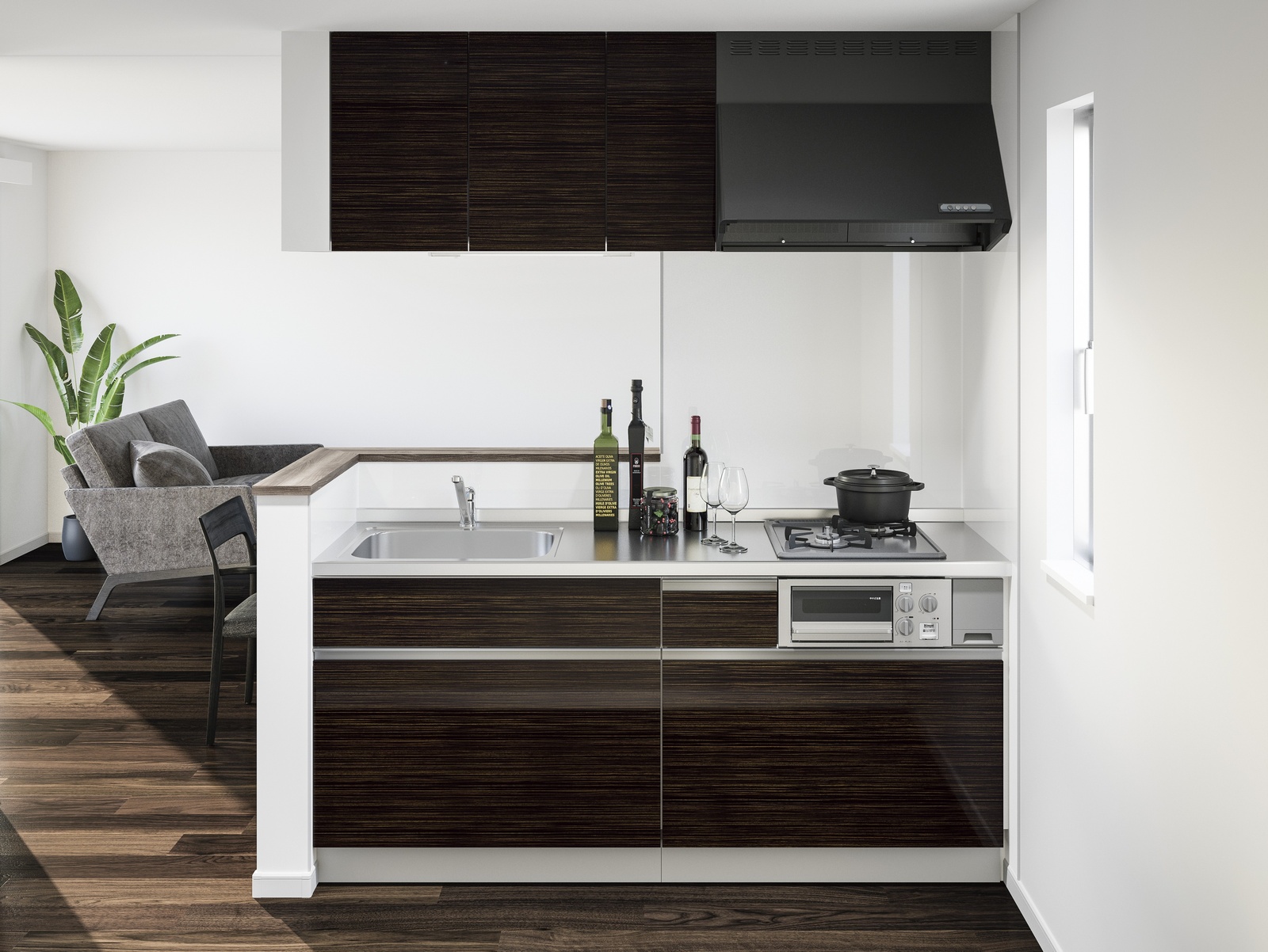また、 開放感のオープンキッチンにも対応するために「ワイドカウンター」「袖壁コンビパネル付き」と2つのオープンキッチンタイプをラインアップいたしました。