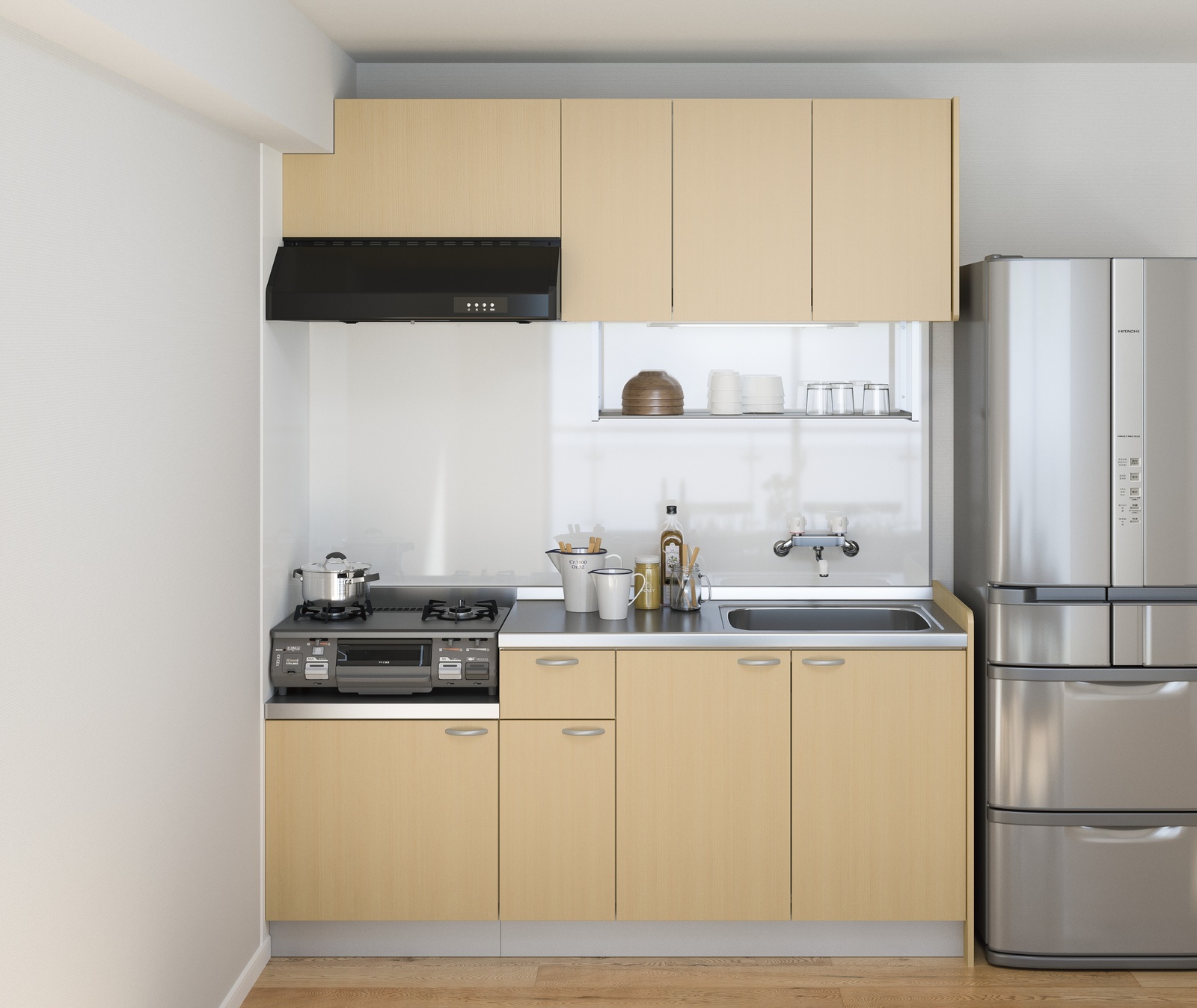 | 180cm | 開き扉タイプ:ステンレスワークトップ、 2口ガスコンロ、 キッチンフード、 扉B | 331,000円 |