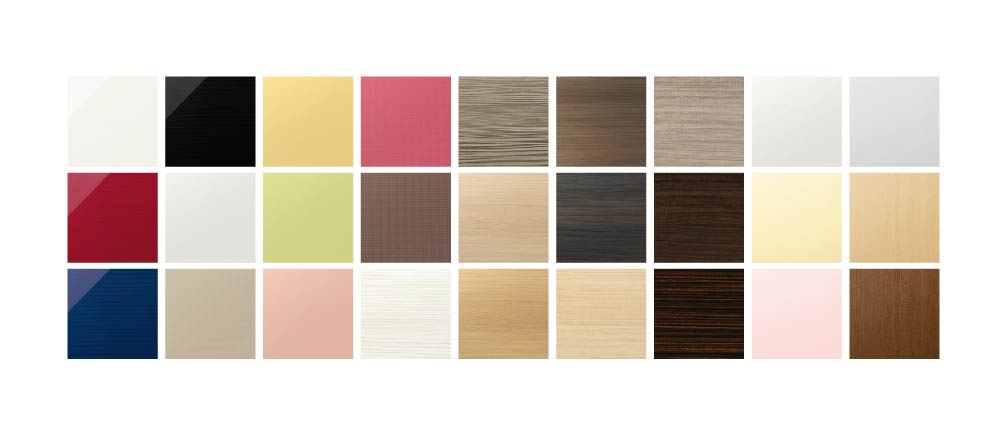 インテリアとの相性が気になる扉は、 深みのある鏡面扉や建具とも合わせやすい木目柄扉など27パターンを用意いたしました。