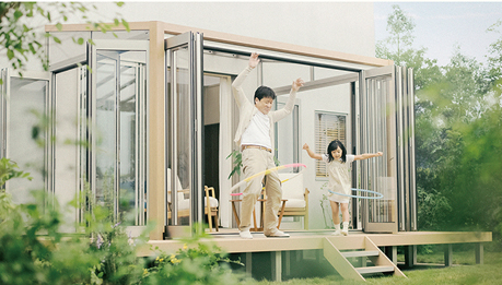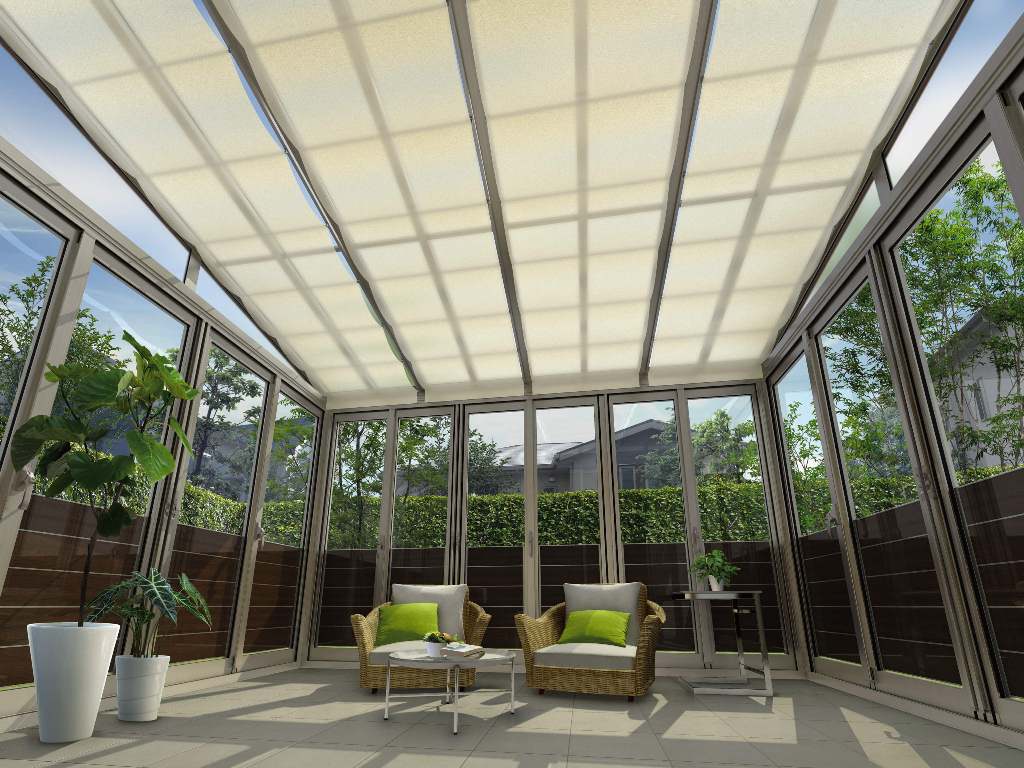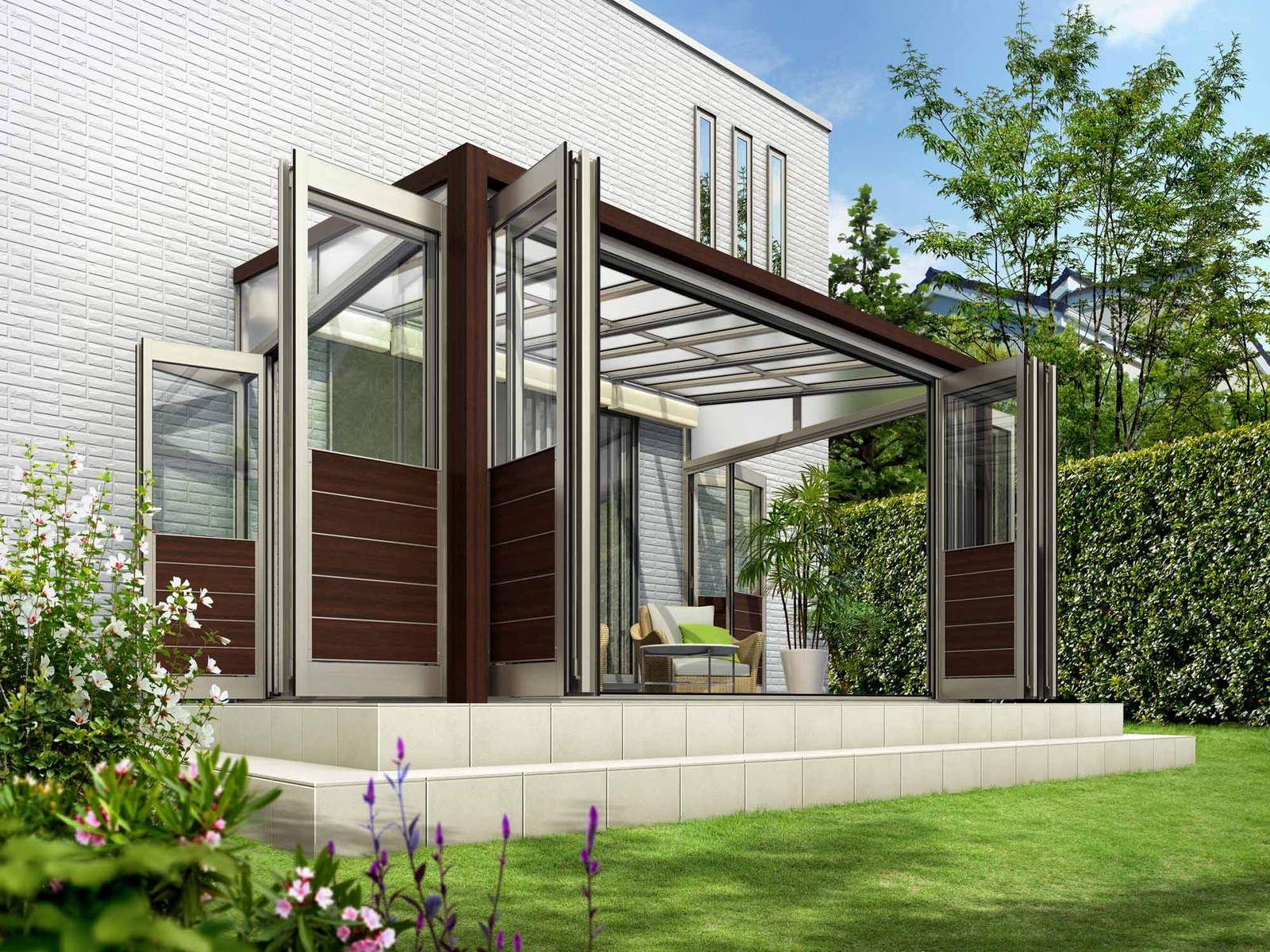 テラスやバルコニーなどの屋外空間を囲い、 多彩なオプションと組み合せることにより、 夏は涼しく、 冬は暖かく、 健康で豊かな生活提案が可能なエクステリア商品。