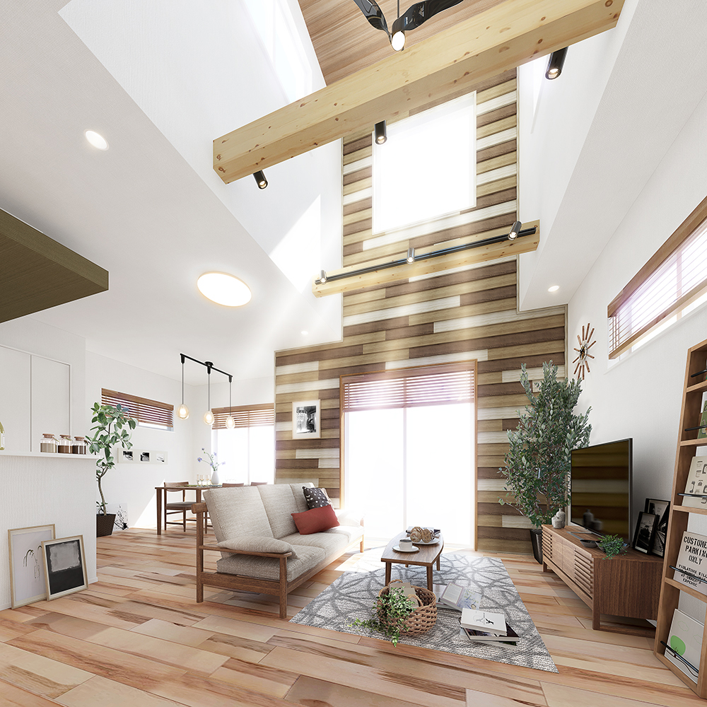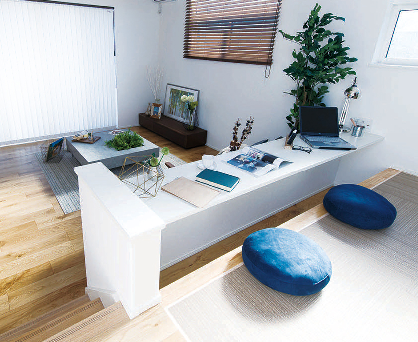 床面の高さの変化を加えることで、 リビングダイニングを立体的に楽しめるスキップフロア。