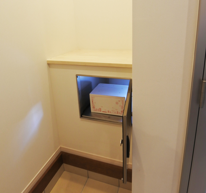 扉の内側に居住者の受領印を代行する捺印システムを内蔵。 在宅、 不在に関わらず、 対面なしに荷物の受取りが可能(※)になり、 面倒な再配達の依頼が無くなります。