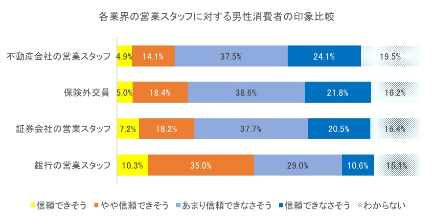 他業界と比較しても、 不動産会社の営業スタッフへの信頼度は低い